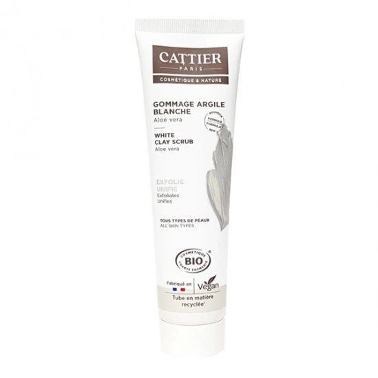 Le Gommage Ă lâargile blanche Cattier certifiĂ© bio offre Ă tous les types de peaux un soin douceur exfoliant, pour une peau dĂ©barrassĂ©e de toutes impuretĂ©s, et un grain plus lisse et doux. FormulĂ©e Ă partir de 25 % dâargile blanche pure et de coque de bambou. Cette nouvelle formule offre une texture plus onctueuse pour une sensorialitĂ© optimale lors de lâapplication. Les grains de bambou alliĂ©s aux propriĂ©tĂ©s de lâargile blanche exfolient et purifient la peau tout en Ă©liminant les impuretĂ©s. Le teint est unifiĂ©, lumineux et lâapparence de la peau est nettement amĂ©liorĂ©e.