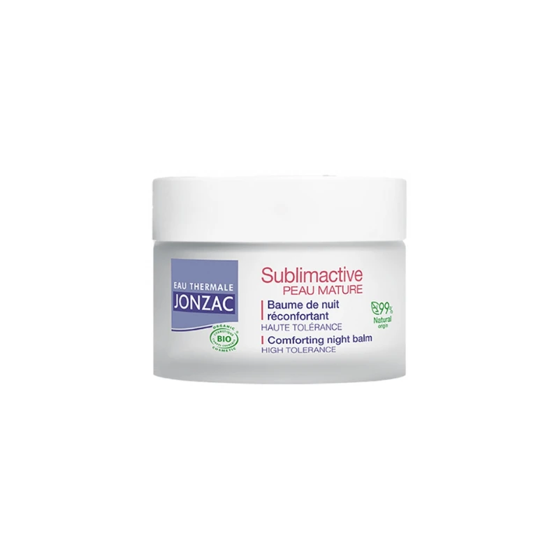 Eau Thermale Jonzac Sublimactive Peau Mature Baume de Nuit Réconfortant Bio 50 ml est un soin de nuit haute tolérance pour les peaux matures et ternes. Ce baume aide à réparer la fonction barrière de la peau pour la rendre plus forte et confortable au quotidien.
