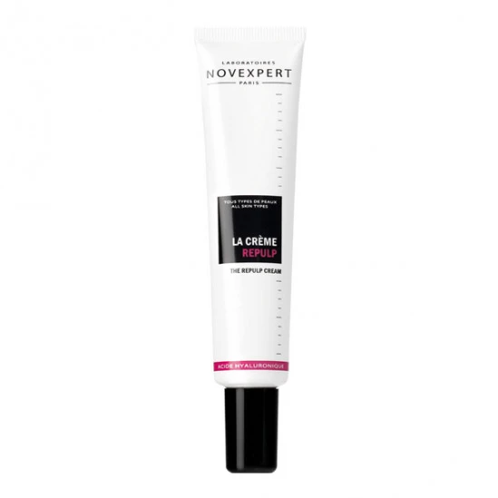 La solution parait simple : élaborer une crème concentrée en AH. Oui mais en mettre beaucoup produit une texture si collante, que même les silicones ne parviennent pas à résoudre ce problème. Et les silicones sont interdits… chez Novexpert !