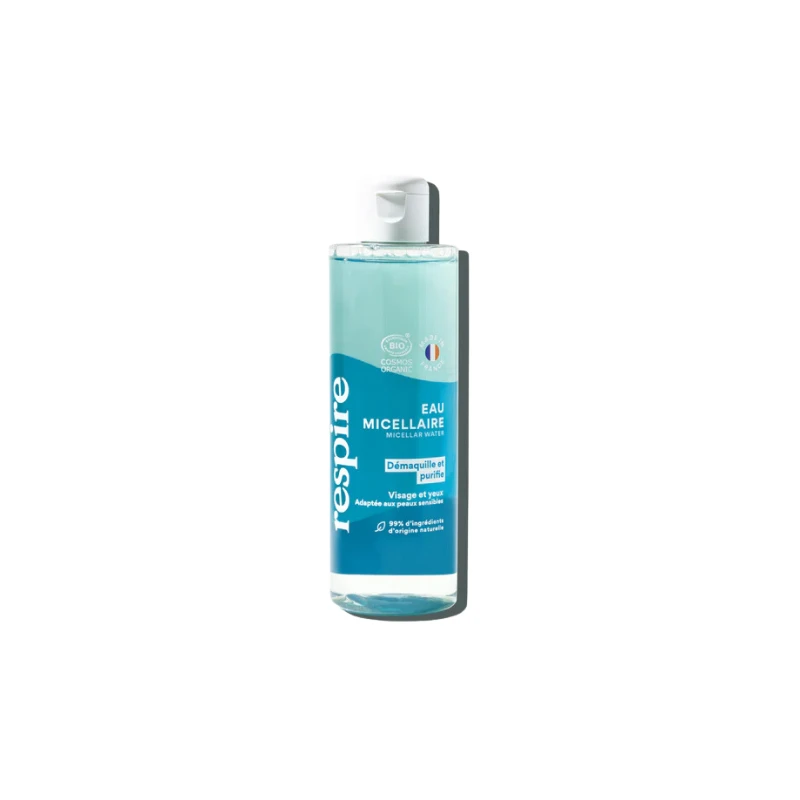 Pour bien vous démaquiller le visage en fin de journée à l’aide d’une solution douce et naturelle, ne manquez pas l’eau micellaire démaquillante et purifiante de Respire !