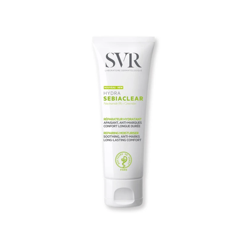 SVR Sebiaclear Hydra Soin Réparateur Apaisant Anti-Marques 40 ml à la texture micro-aérée est un soin conçu pour réparer, apaiser, réduire les marques des peaux à tendance acnéique sous traitements desséchants.